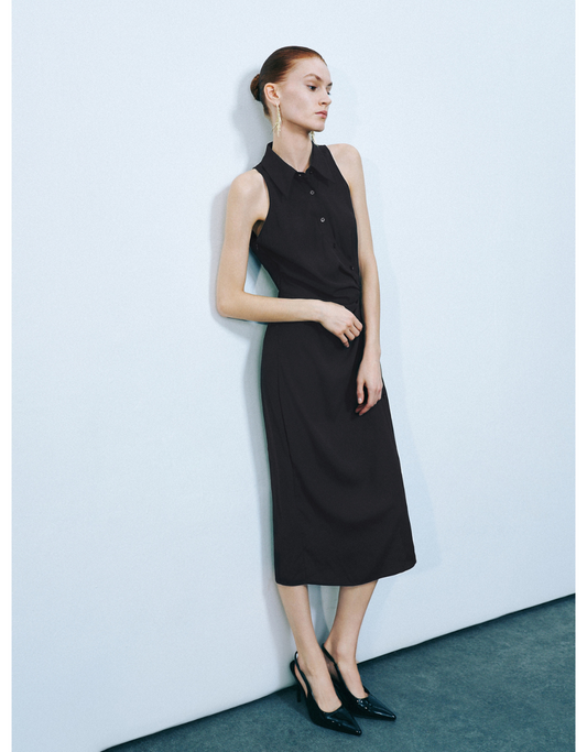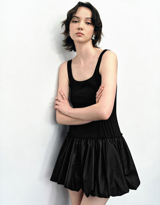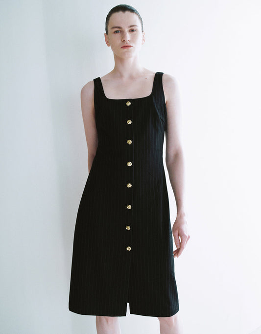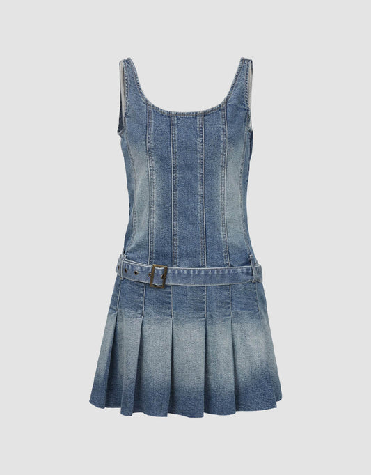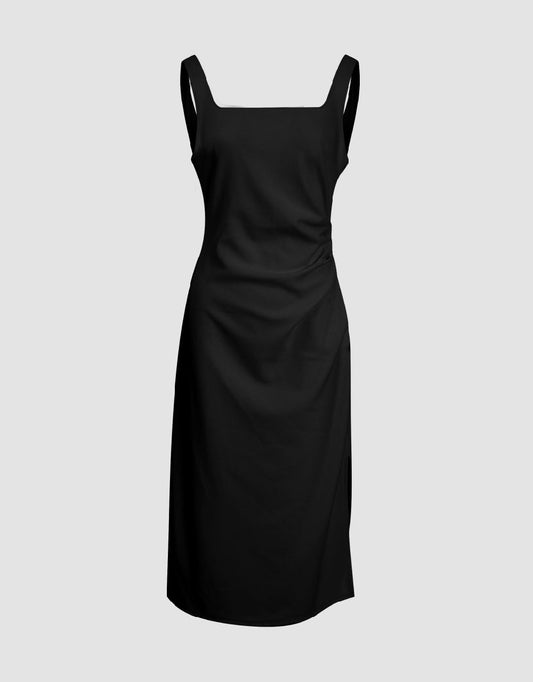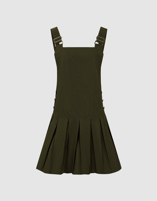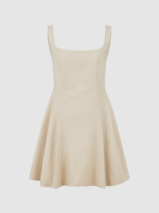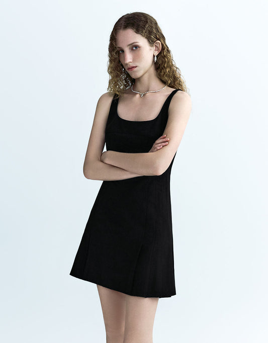 Sleeveless Square-cut Collar Pleated A-Line Dress