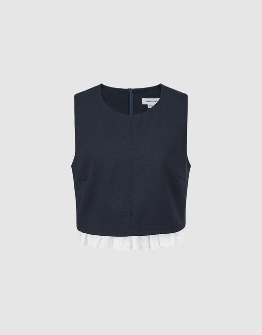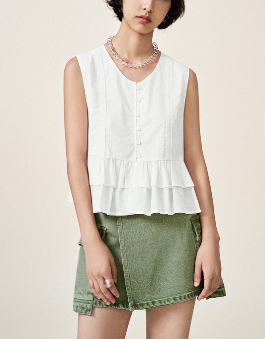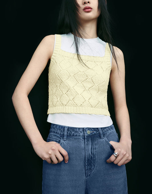 Sleeveless Square-Cut Collar Knitted T-Shirt