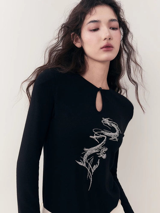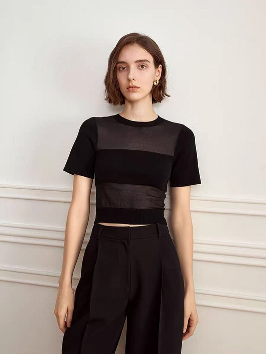 テンセルブレンド ラップタイ ノースリーブ トップス ブラック