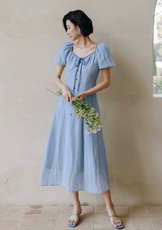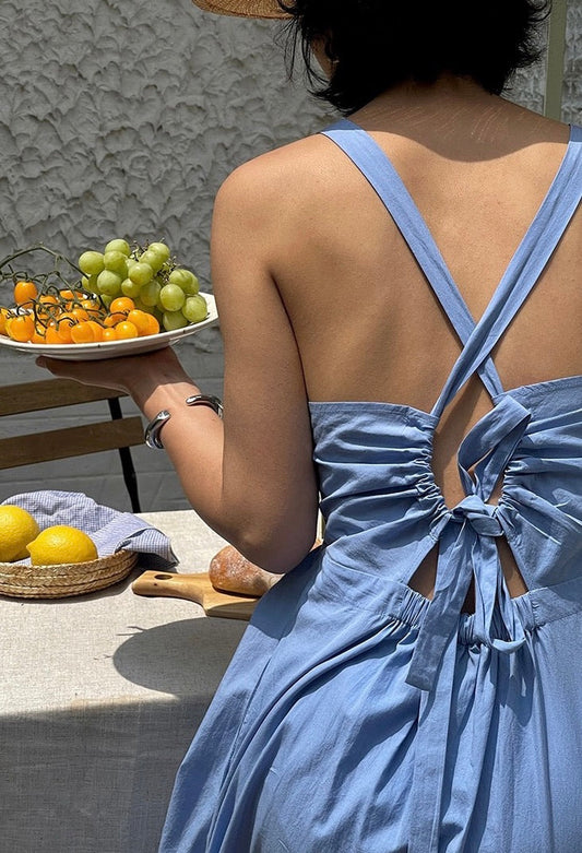 テンセルブレンド クリスクロスバックタイマキシドレス ブルー