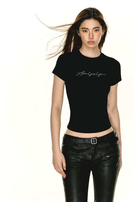 タッセルレター刺繍ベアトップ&ワイドレッグパンツ