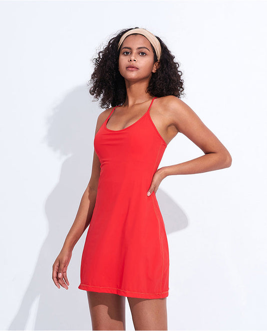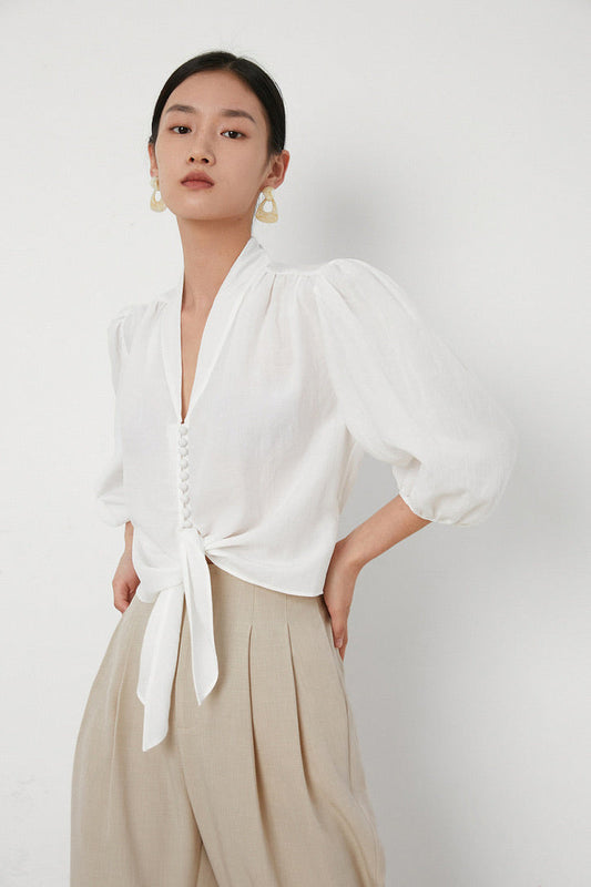 テンセルブレンド クリスクロスバックボタンミディドレス ホワイト