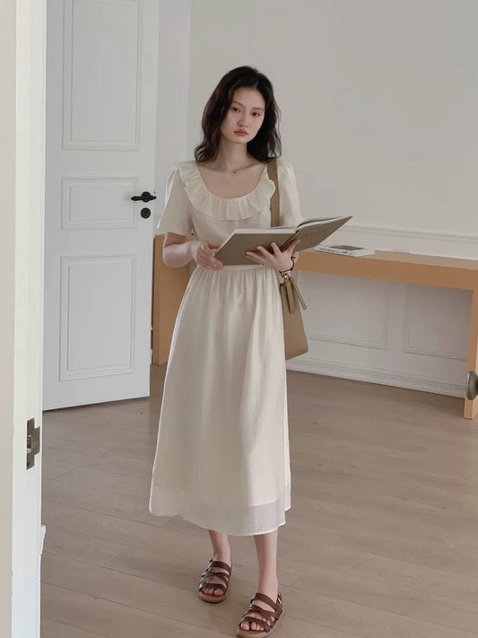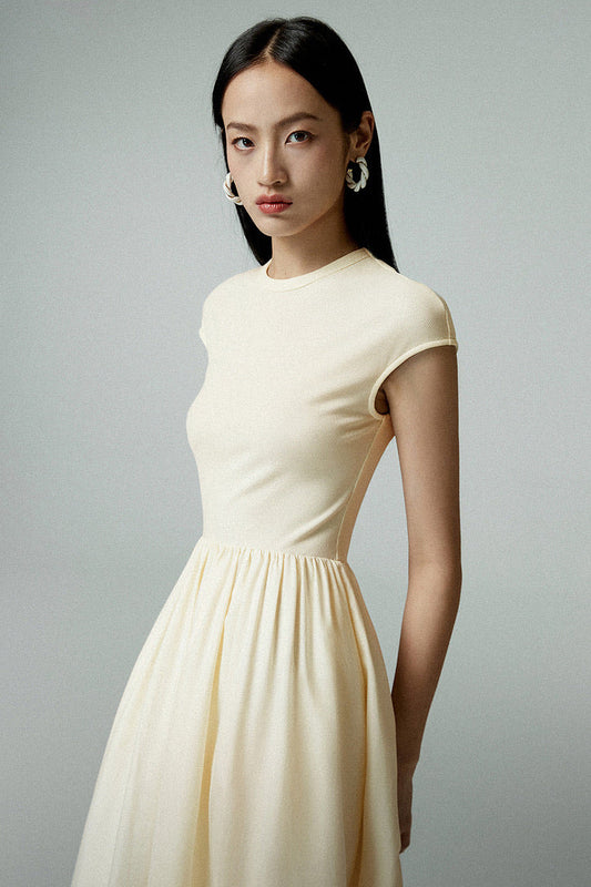 テンセルブレンド 2ウェイ フリル ドレス クリーム