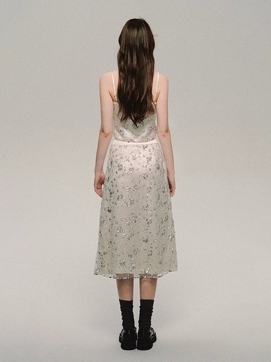 立体スパンコール刺繍キャミソール&Aラインスカート