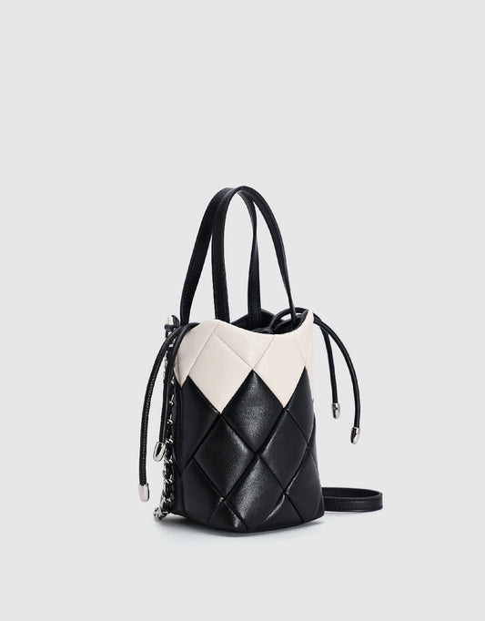 Two Toned Quilted Vegan Leather Shoulder Bag