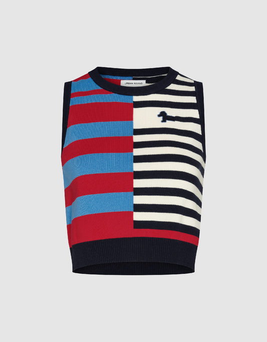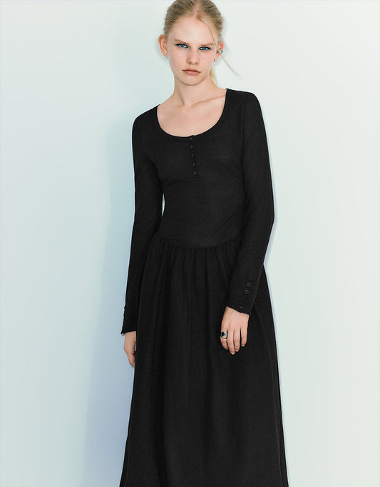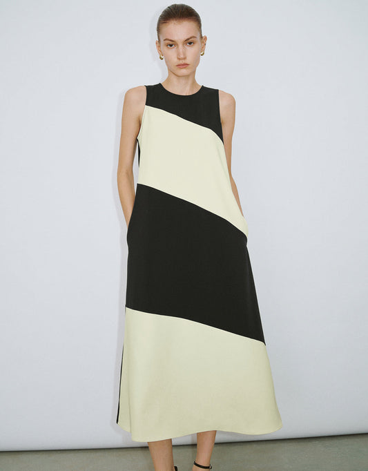 Two Toned Sleeveless Crew Neck A-Line Dress