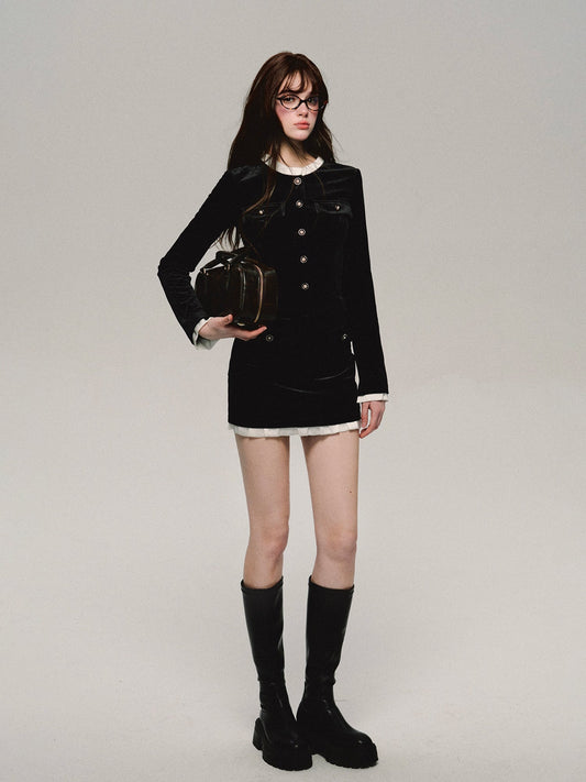 ベルベットハイエンドプリーツスリムセットアップジャケット&ミニスカート