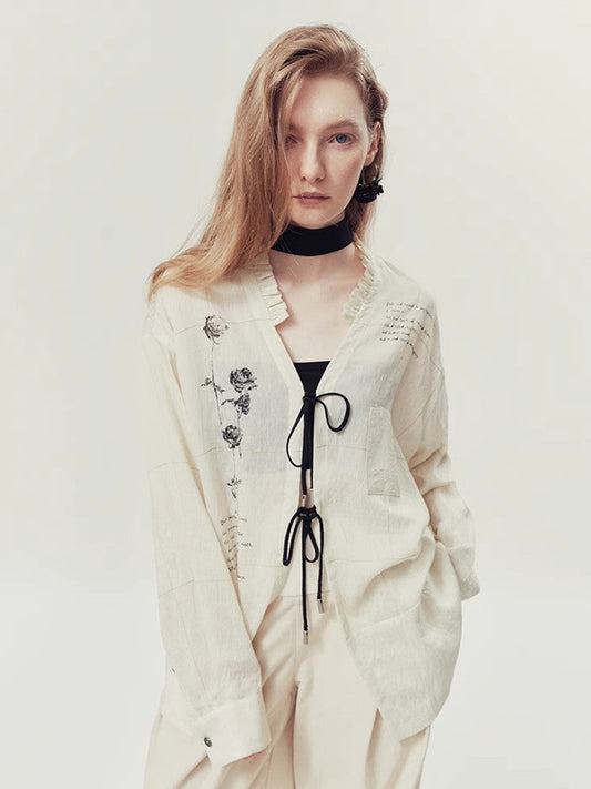 水彩レトロオーバーサイズビッグシルエット長袖シャツ