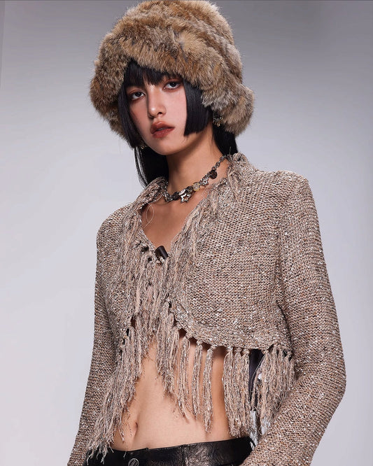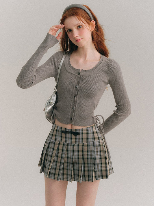 ウエストホローショートニットカーディガン