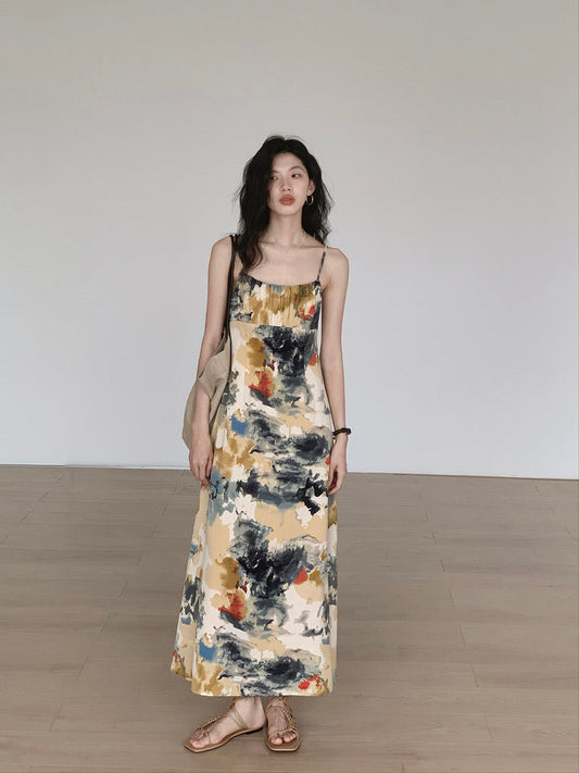 水彩プリントのキャミマキシドレス(マルチカラー)