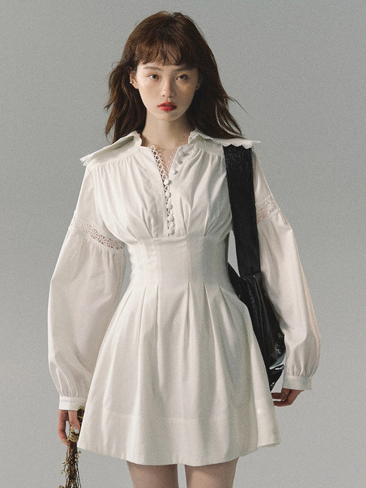ウエストシェイプパフスリーブチュニックワンピース