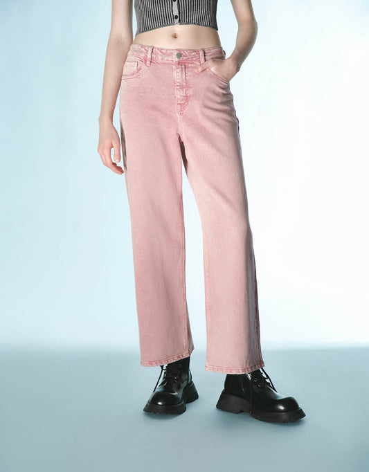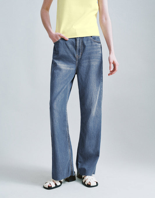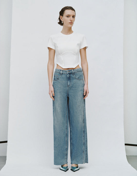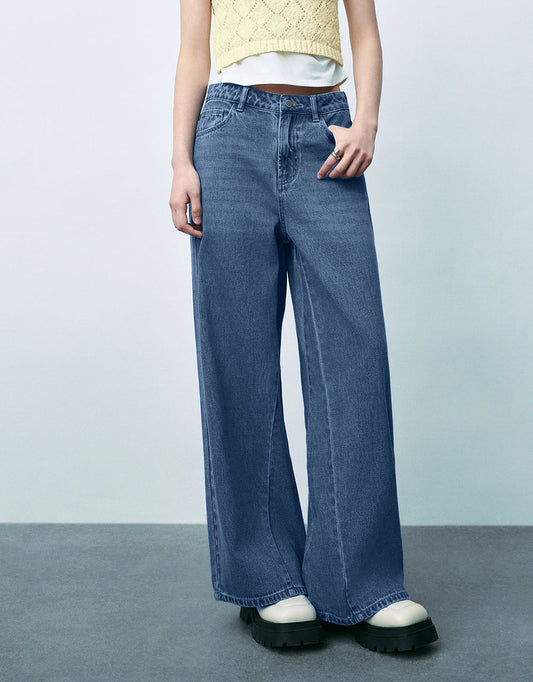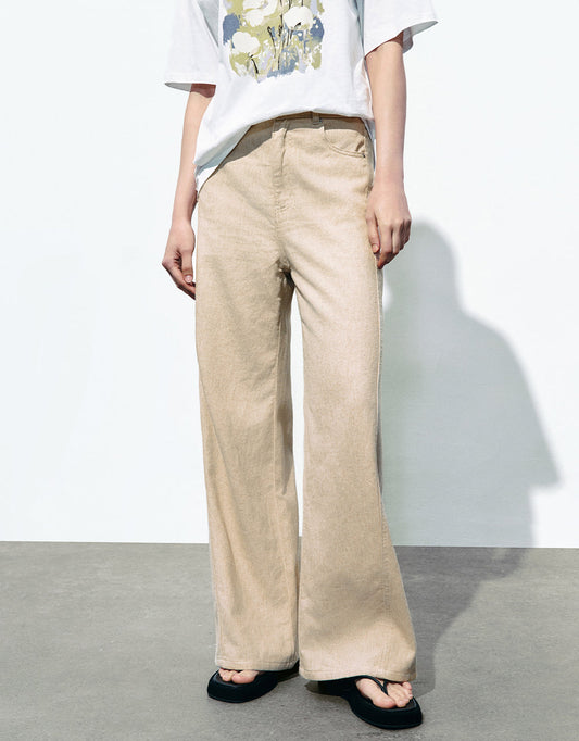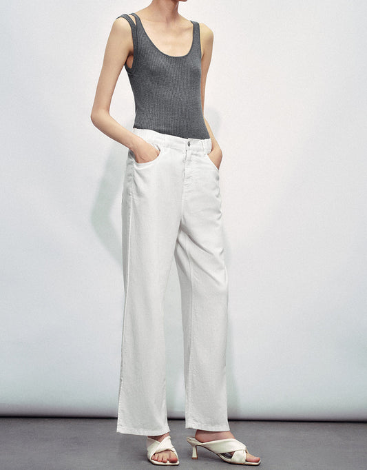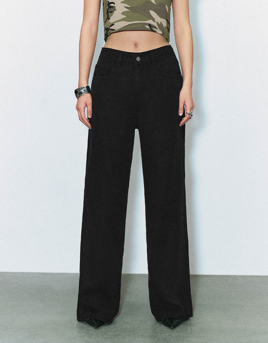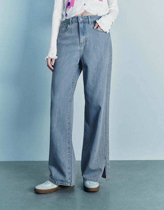 Wide Leg Zipper Spliced Flared Pants with Relaxed Fit and Split
