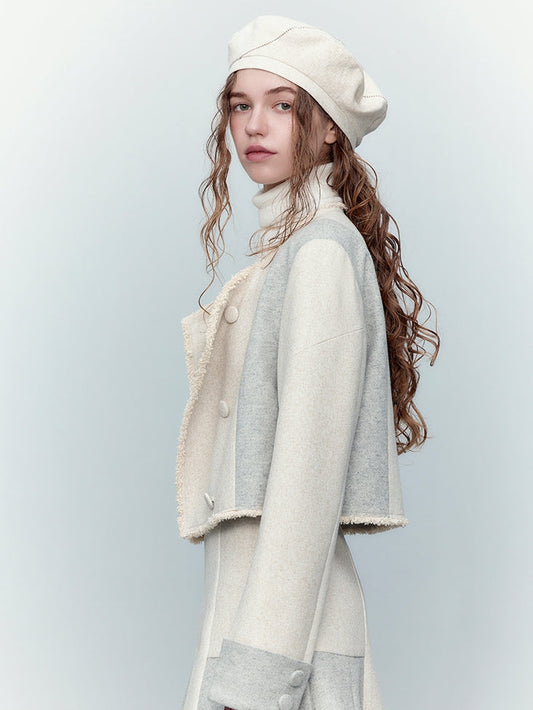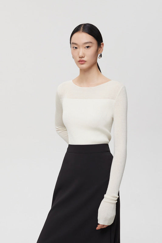ウールブレンドデュオトーンニットトップス(ホワイト)