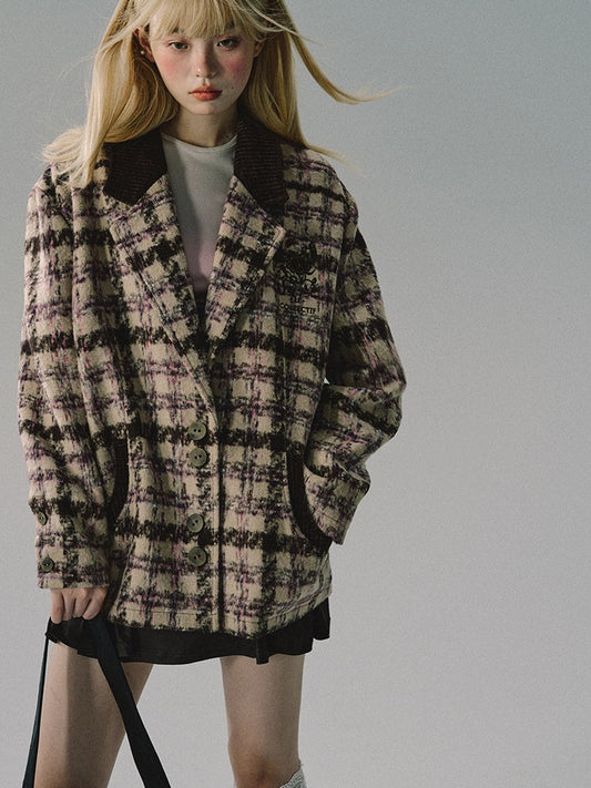 ウールチェック レトロ オーバーサイズ ミドルコート