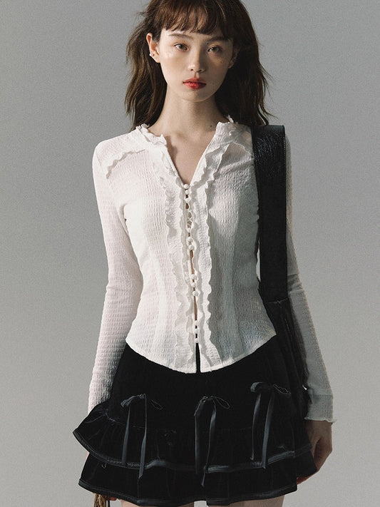 ウール スリムフィット ベースブラウス