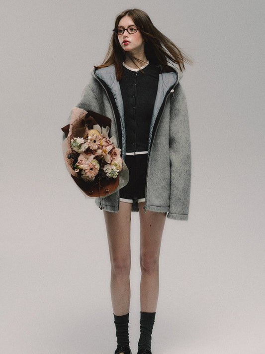 ジップアップフード付きルーズショートコート