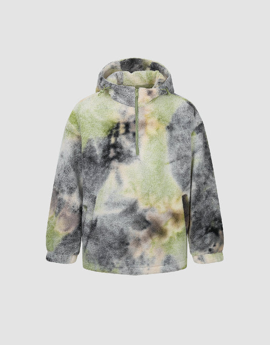 Zip Half Placket Printed Hooed Overhead Shirt