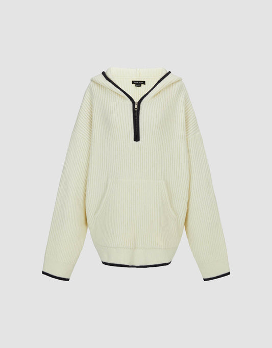 Zip Half Placket Hooded Knitted T-Shirt