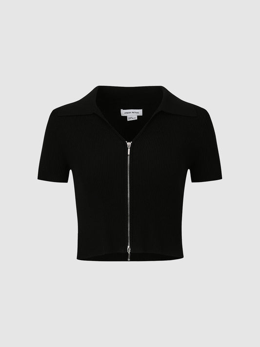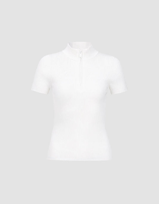 Zip Half Placket Knitted T-Shirt