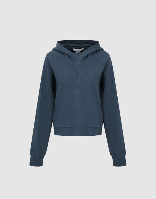 Zip Half Placket Hooed Overhead Shirt