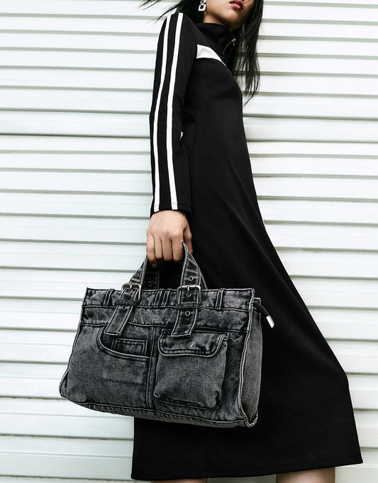Zip Half Placket Stand Collar Dress