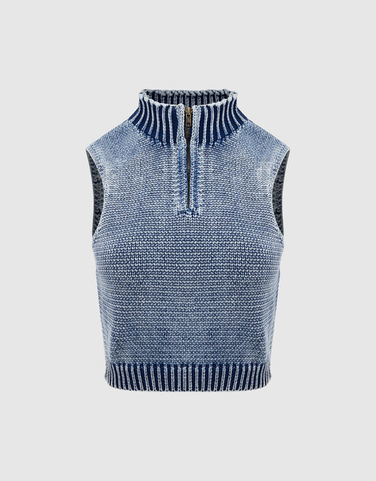 Zip Half Placket Knitted Vest