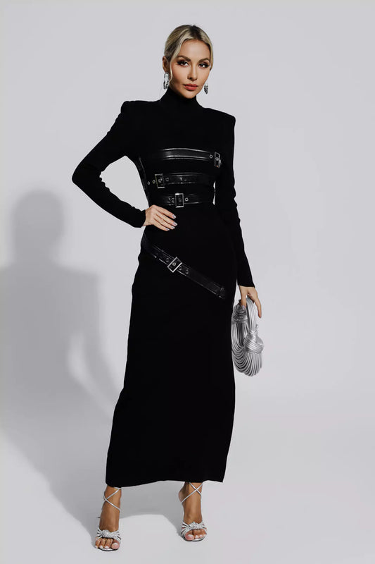 ゼルダ ブラック PU マキシドレス