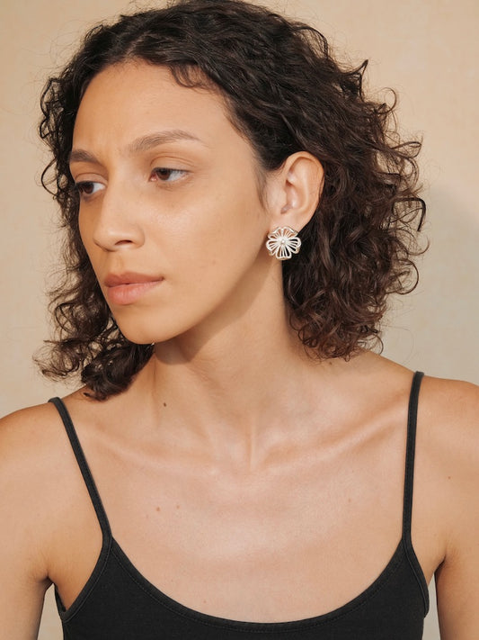 “Silver Bloom” Hollowed Floral Earrings