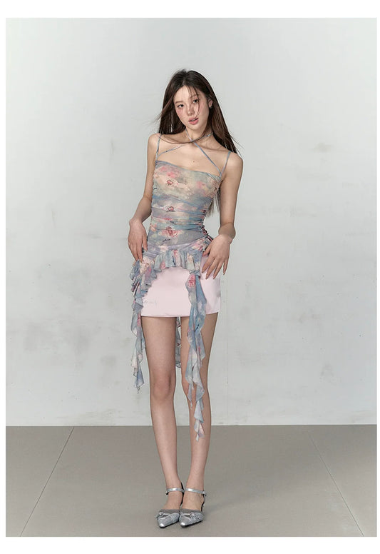 アンジェリカ ブラック フローラル ワンショルダー バンデージ ドレス