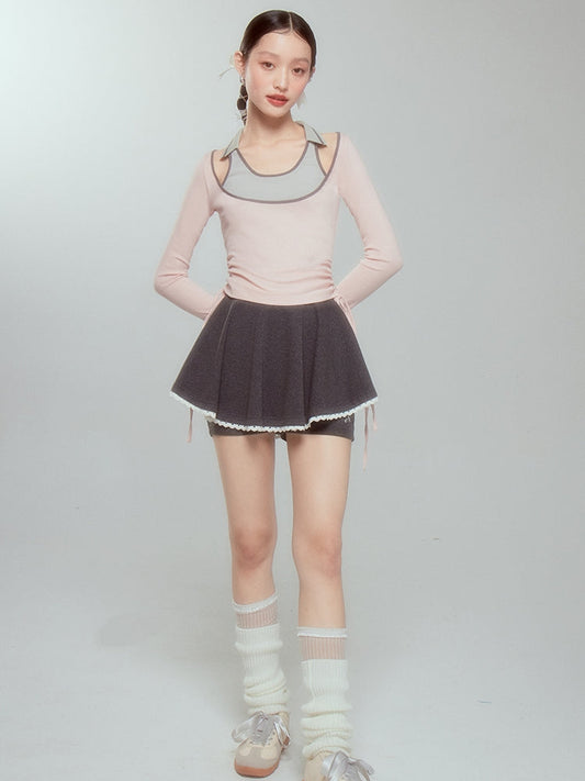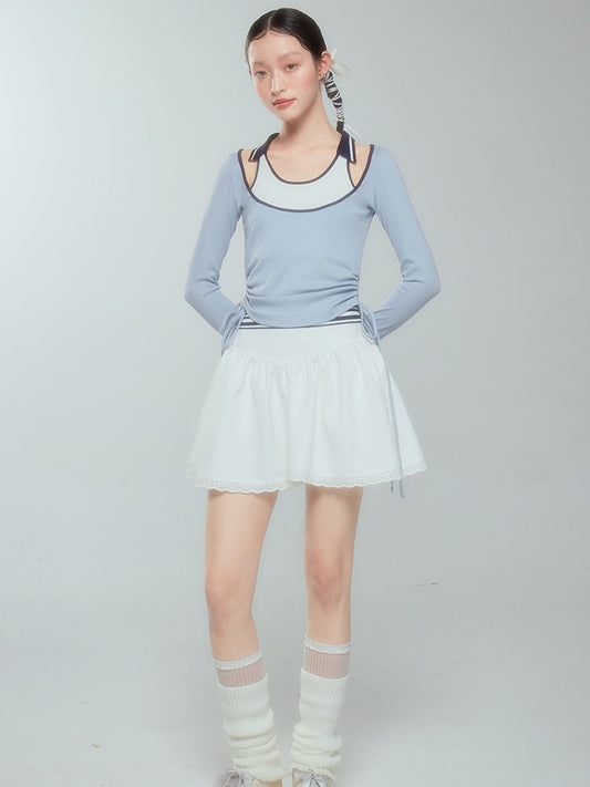 ドローストリングレイヤードタイトバイカラーカジュアルカットソー