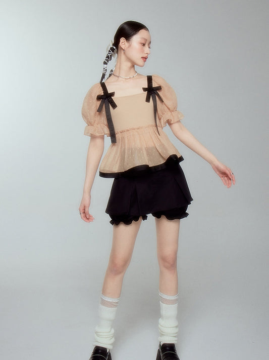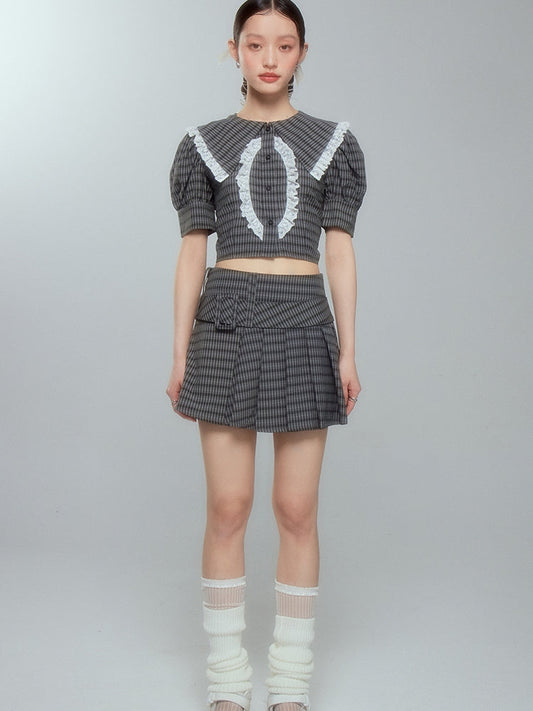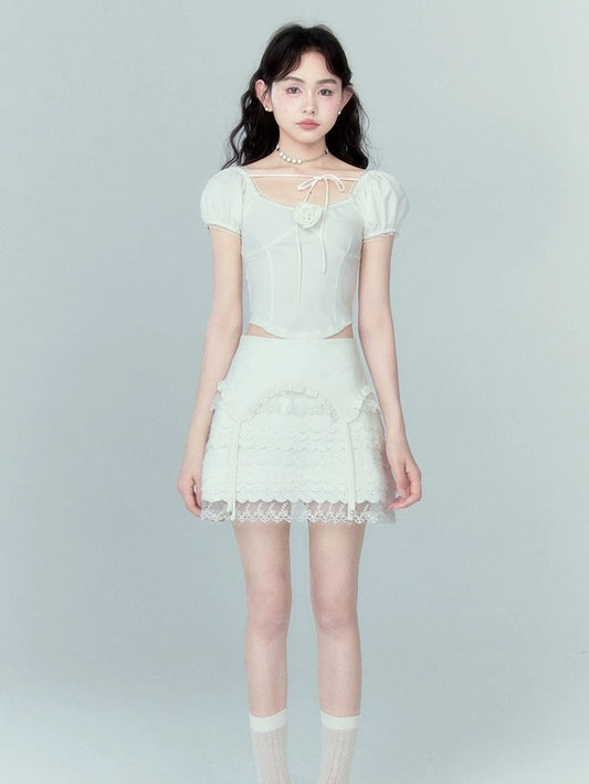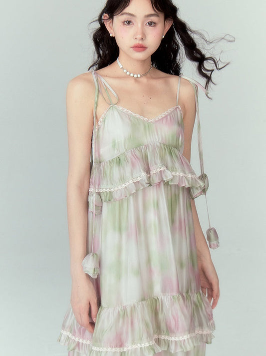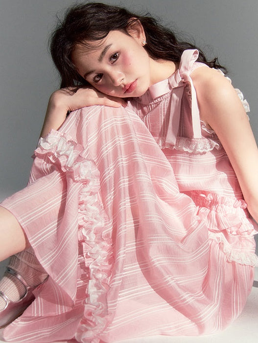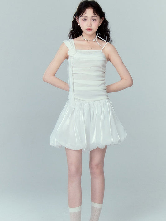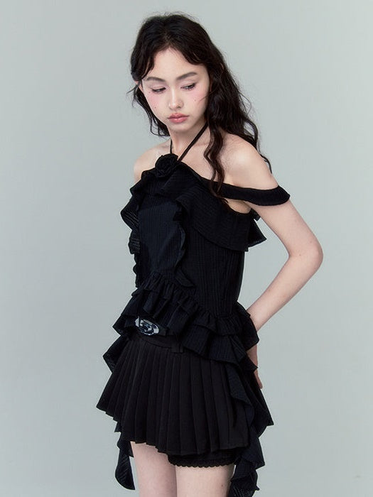 ホルターネックサスペンダートップ&ショートプリーツケーキスカート