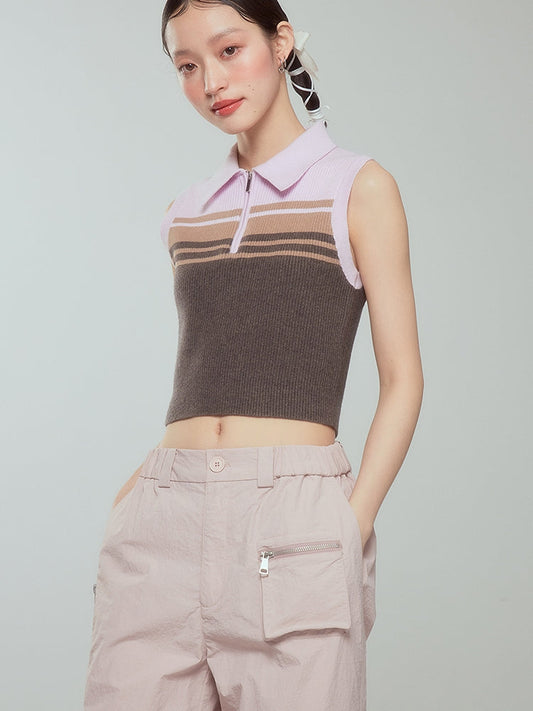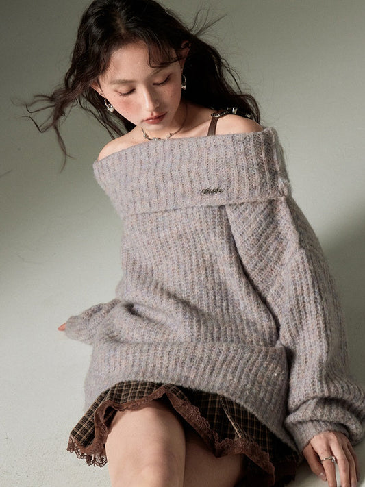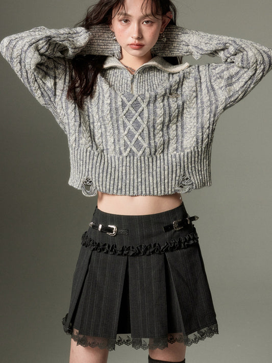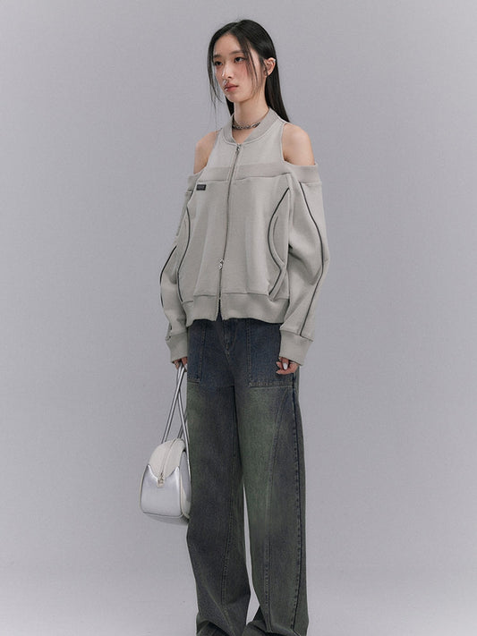 オープンショルダーダブルジッパーカジュアルニチトップス