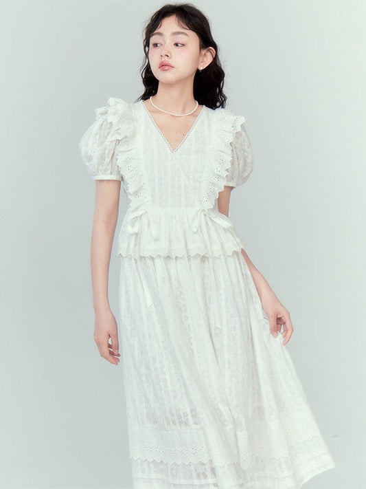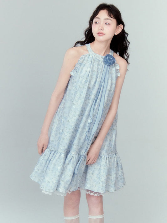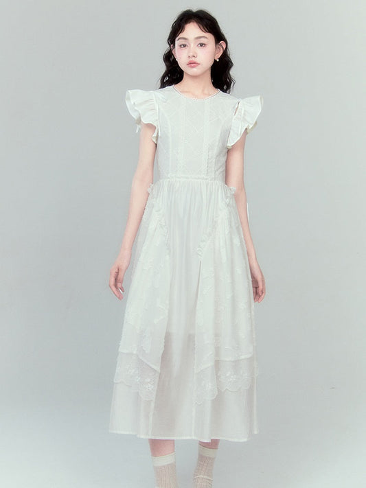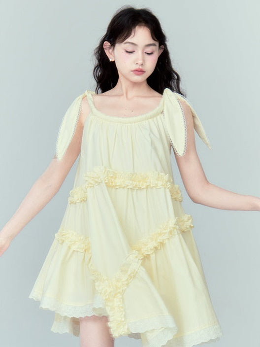 ロータスリーフレースストラップイレギュラーフリルドレス