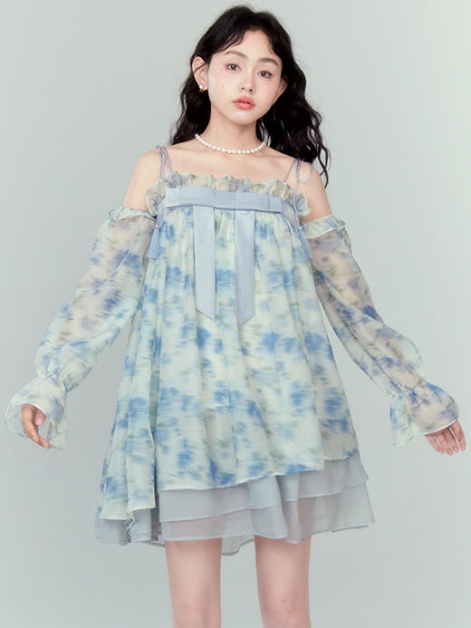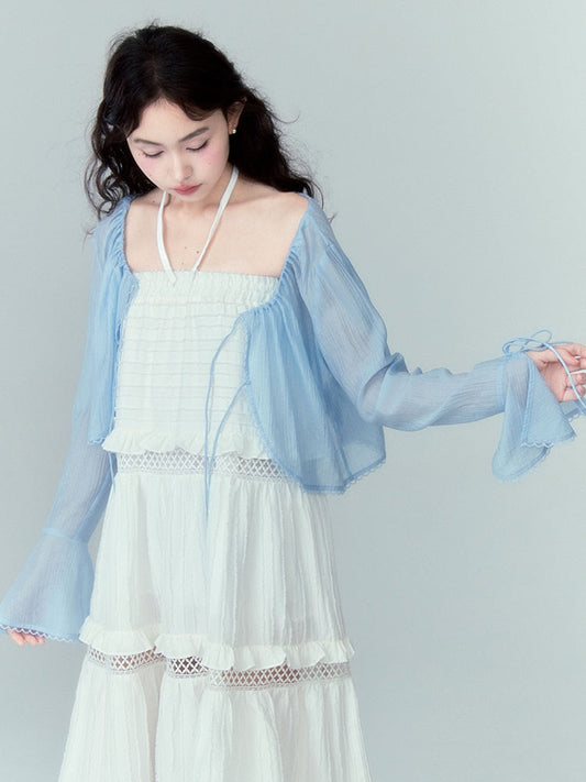 ホルターネックフリルキャミソール&ストラップショートカーディガンセットアップ