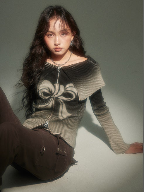 Vネック ボウ刺繍 メタルボタン ジャケット