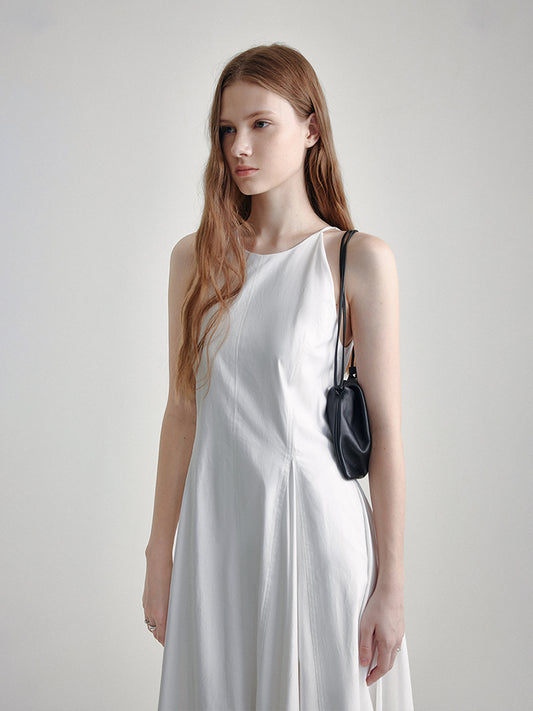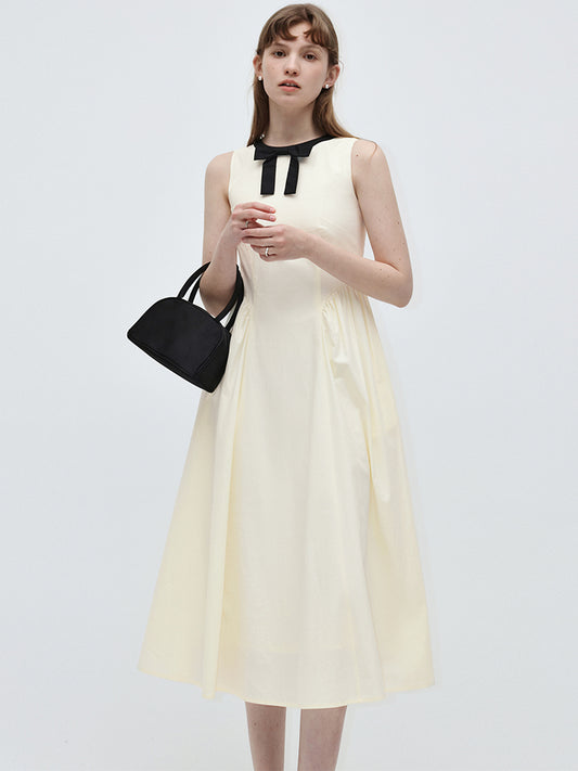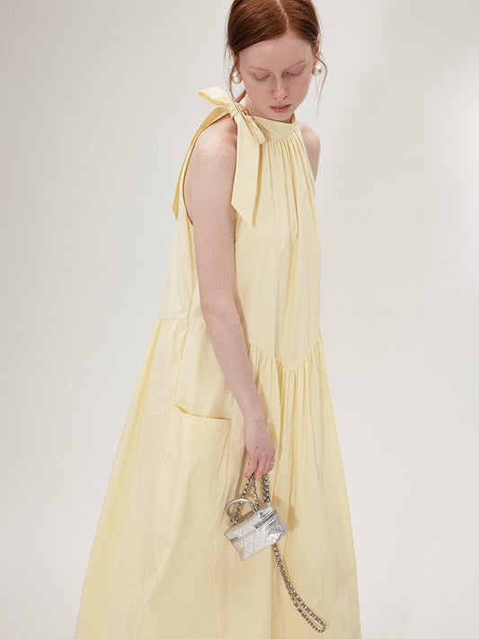 ベージュ ノースリーブ ウエスト絞り マキシドレス