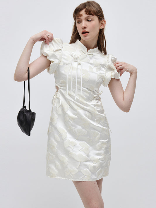サマー スウィートハート 刺繍 パフスリーブ ミニドレス