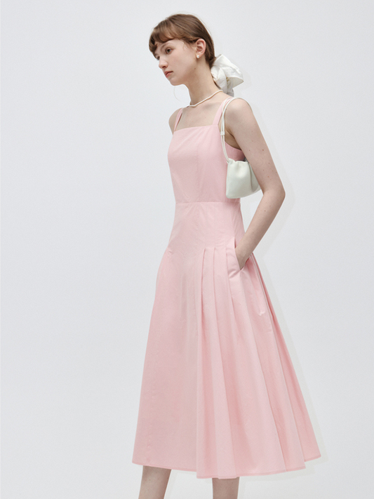 夏の新作フレンチスタイルフリルエッジシングルボタンストラップドレス