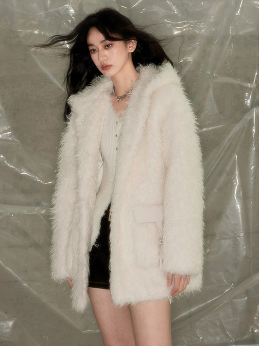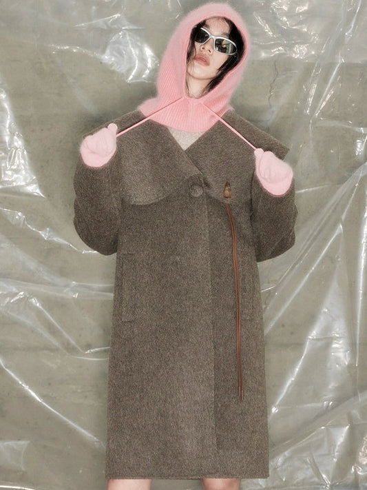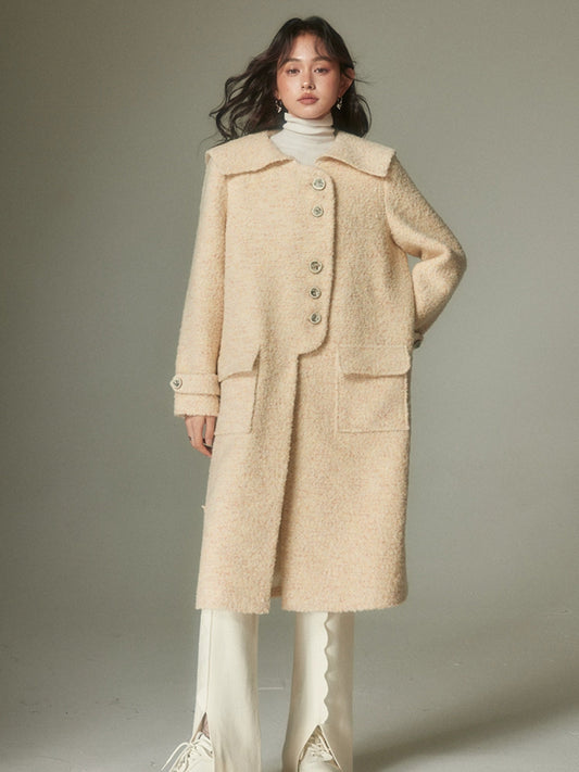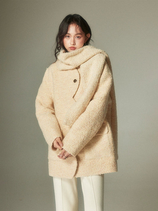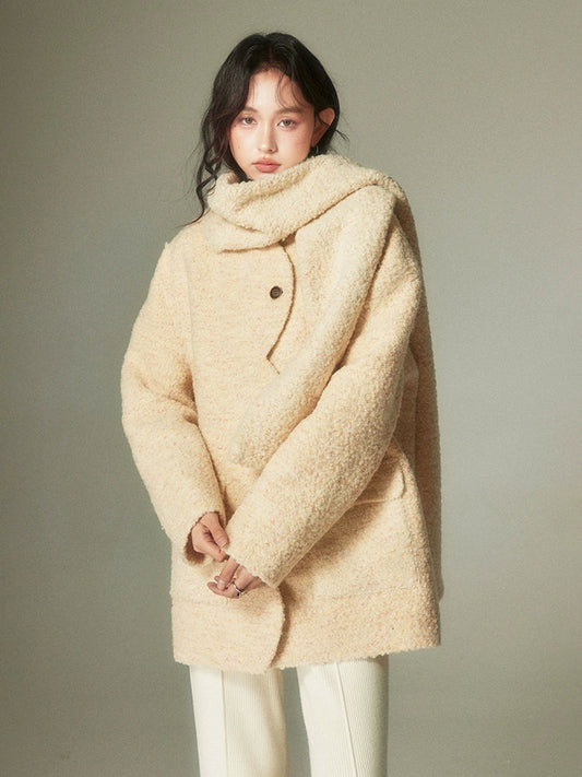 ウェーブエッジ ラウンドネック ドロップショルダー コート ストール付き