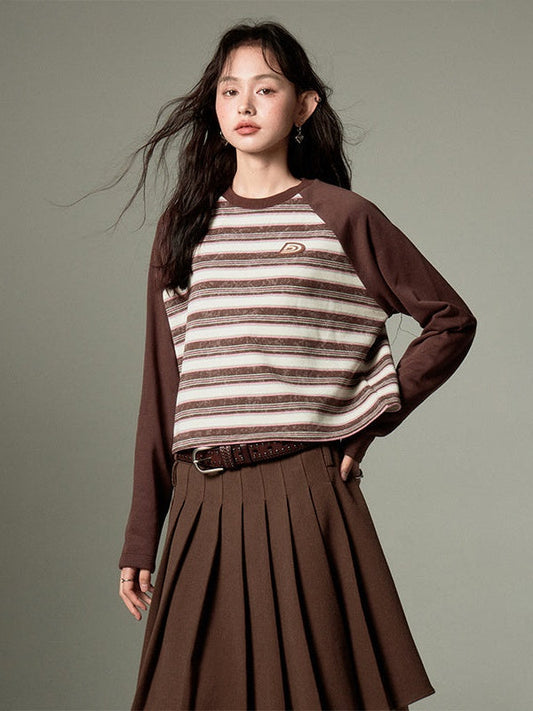 レトロボーダーラウンドネックラグランスリーブスウェット