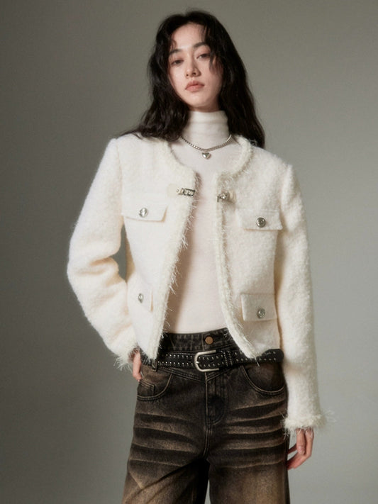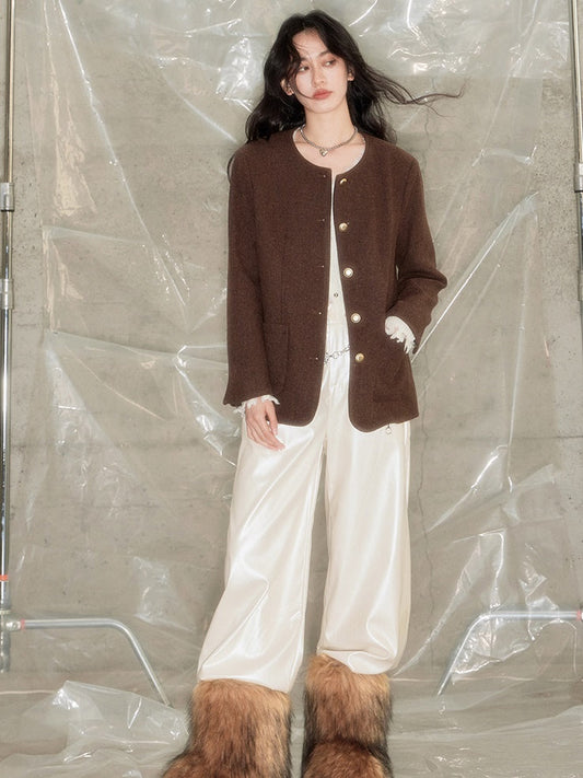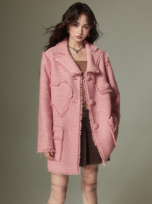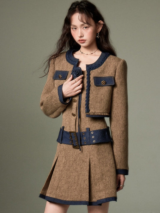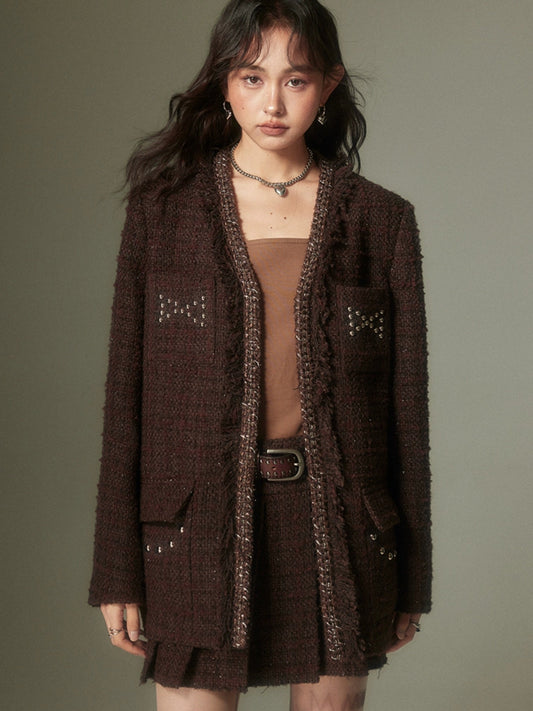 リベットグリッターツイードノーカラージャケット&プリーツスカート