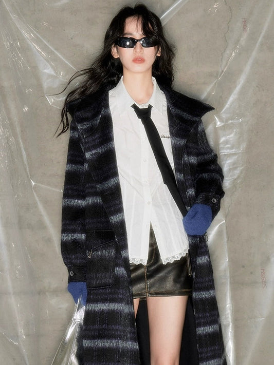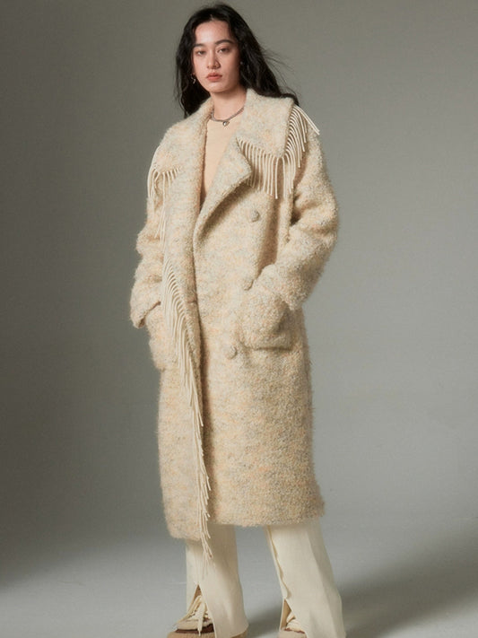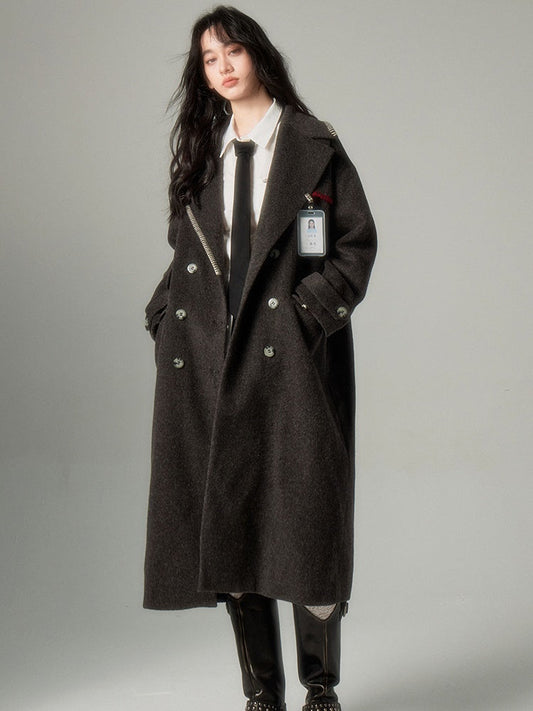ゆったりとしたドロップショルダーの刺繍ベルトコート