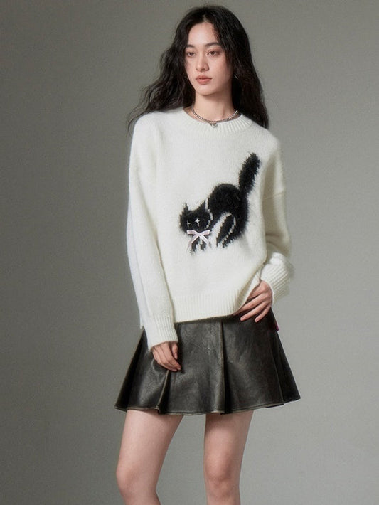 キャットソフトワックスラウンドネックプルオーバーセーター