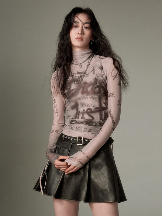 メタルチェーン チェック柄 Aライン プリーツスカート