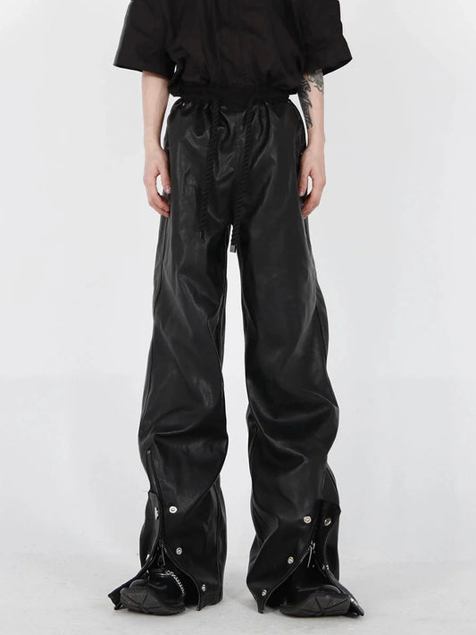 Button-Zip Faux Leather Pants with Thick Rope | Steatwear Trousers