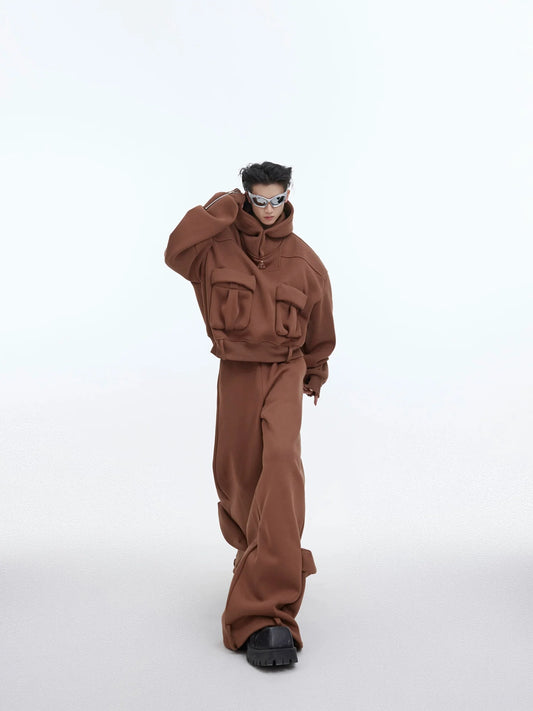 Deconstructed Heavy Hoodie with Large Pockets and Casual Sports Set