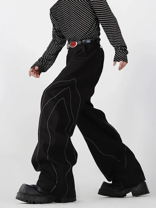 Elegant Spliced Seam Suit Pants with Contrast Stitching in Black