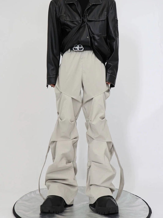 Gothic Pleated Cargo Pants with Streamer Detail in Wide-Leg Design