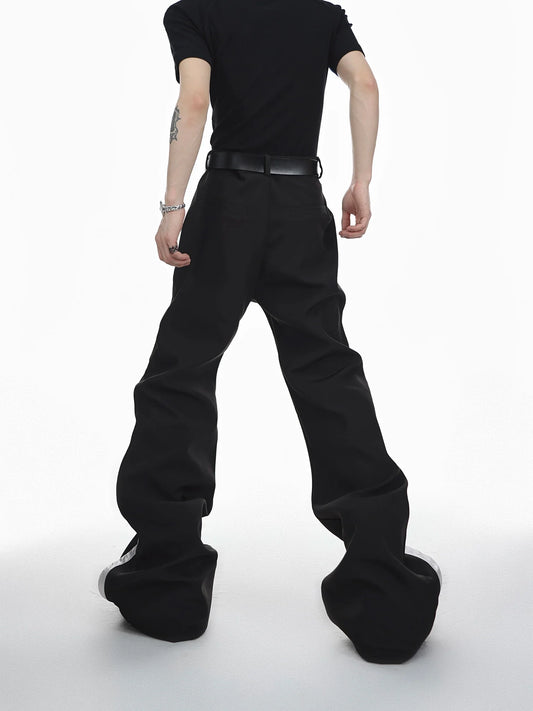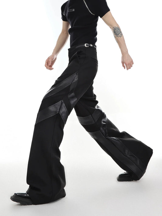 Punk-Inspired High-Waisted Flared Pants with Leather Spliced