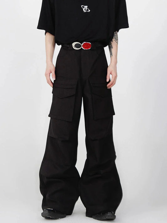 Loose Straight Cargo Pants with Multi Large Pockets and Pleated